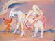 Mujer sobre un carnero