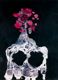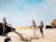 Mujeres con cabezas de flores encontrando en la playa los despojos de un piano..